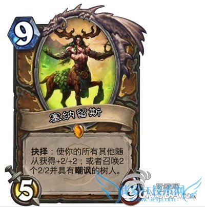 塞纳留斯优势可以用它碾压对面,(+2+2的光环啊,暴风城的勇士各种羡慕嫉妒恨)本身5/8的安排也不错。劣势或者均势的时候招树人也不错(我觉得它招树人的情况占绝大多数)。