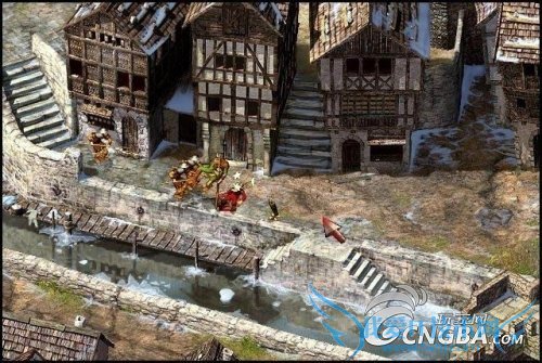 能爬上城墙的位置在城堡的右边,但是路上有不少敌人。解决掉之后在有卷轴的地方就是上城墙点。爬上之后直接去城门正上方的房子,砍掉其中的缆绳就可以将城门打开。不过先别让自己的伙伴进去,因为你杀死的人可以将敌人引出来,如果自己进去消灭敌人的话难度要大得多。这里要注意从右边门里出来的敌人,其中有不少弓箭手,可以先让Robin围在门口一口气将他们全部解决,否则等他们分散了就比较麻烦。城外的伙伴解决冲出城的敌人即可。全部解决之后进城堡左边的门口将缆绳砍断就可以上城楼,城楼上的缆绳砍断后通往城堡背后的道路就会出现。沿着路出去给乞丐钱可以得到一个卷轴,这就会告诉你Will Scarlet究竟被关在什么地方。地点是在西面塔楼的最下层,这里需要注意的是,以上的这一步和以下一步可以颠倒顺序,如果你先不进城,直接从城外去找乞丐也是可以的,但是最后还是要以同样的方法攻进城堡去。到西边的塔楼后让有开锁技能的人去将门打开就可以救出Will Scarlet。如果开始打开了出城的门,可以直接攻出城去,到东边有木标牌的地方即可过关,也可以通过城里的密道直接从东边的房子里出来离开。