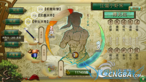 人物基础攻击力,实战,武学,道德,名声统一调整为500。