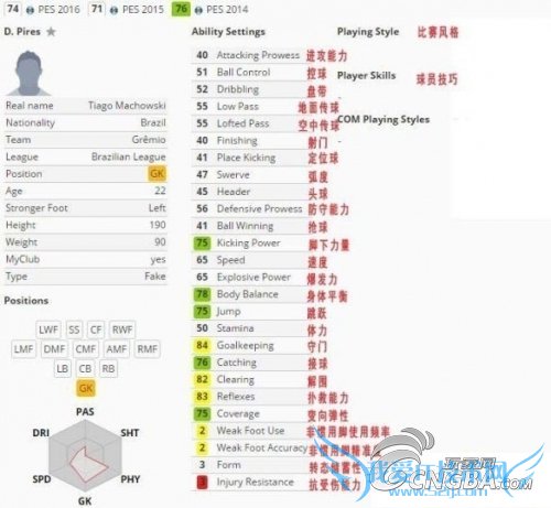 这是一名空架球员,不过守门员能力还是挺好的,养久一点,绝对是一代门神。