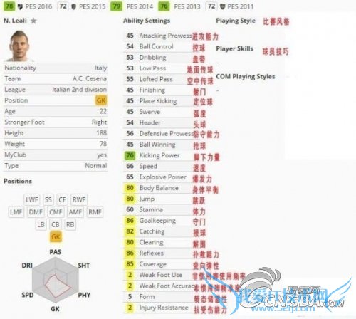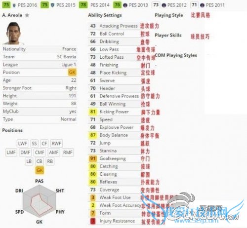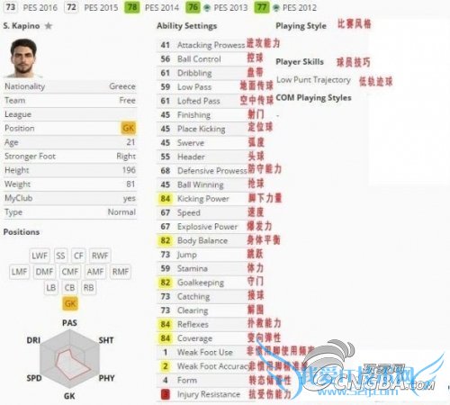 来自奥林匹亚科斯的第三守门员,和PES2014以前版本相比较,比分可以说是骤降,但是,如果你想买一个替补的话,该球员也是一个不错的选择。