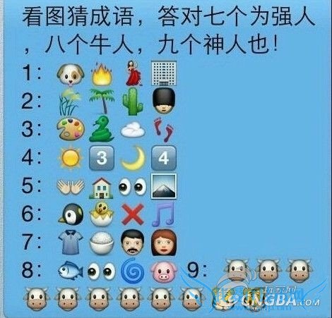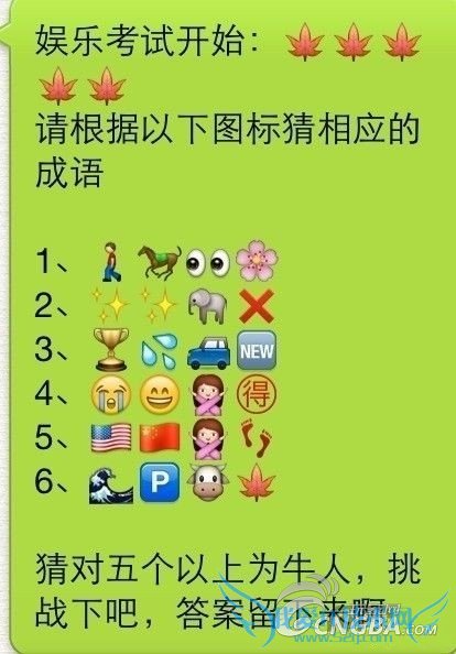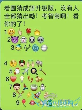 1.第一个成语:喜上眉梢(喜上玫烧)这个感觉十分明显了,相信只要将每个表情都念出来,然后这个成语也就引刃而解了吧,没有什么难度的!