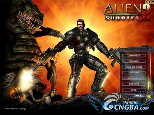 回头再说Kurt,追逐SCHWANG来到了异型的母星。不要理会飞船,赶紧向身后的路逃走。来到一个大房间里,在高处有三个自动防卫炮,下面还有不停出现的异型和机器人。消灭掉自动防卫炮,站在低处的那个飞船喷气口下的栅栏上,会发现右侧高处的飞船喷气口里的能源球激活了,打掉它。然后再打掉左边的那个能源球。