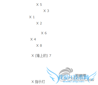 追下去敌人开动了最后一个定时炸弹,指示灯的顺序为从下到上是1至6。可以用原子土司来打击按钮来代替来回奔波。按钮的排列这次无法一张图表示了,画张大家参看吧(指示灯从上到下是1至8。)