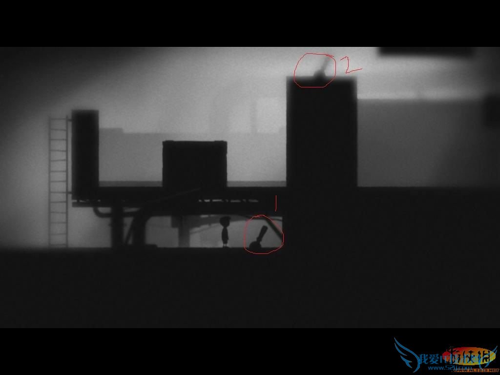上去后向右再一路向上,走到2个倒着的烟筒处(不知道叫什么类似烟筒),主角先推动机器(这也不知道)来到中间,把右边的机器拉到最左边直到拉不动为止,再到左边拉动开关,此时轮胎出现有段时间,跳到左边机器的右边把他推到轮胎滚出来的地方,然后往后拉(不然时间来不及),用那2个机器把轮胎运送到右边,轮胎会顺着最右边路口掉下去,顺原路下去,到轮胎处,把它拉到最高点放手立马回到有箱子的那个地方(推着轮胎跑),轮胎来回滚动导致机关打开,刹那间把箱子推下去(箱子推下去后人立即向后退,小心碾死),现在把箱子拉到右边,跳到有摇杆机关的平台上,扳动机关,下来把箱子推到齿轮上,再跳到上方平台上,把平台上的箱子推上齿轮,人也跟着上齿轮,顺着齿轮,来到陆地,然后2个箱子一个压在机关处,一个放最右角