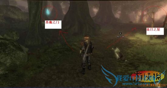 1 按开头的悲恸森林到达落日之屋后,左侧恶魔之门奖励100万(有几个哈比人),直上落日之屋。我的图恶魔之门是完成任务后打开的开始可能不是蓝色的。