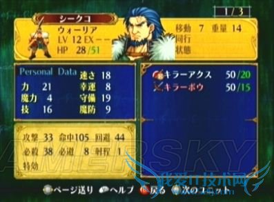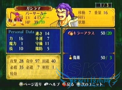 2、二号飞马タニス的“援军”特技也是本话关键点之一(尤其是M难度),除非玩家对自己的实力绝对有信心,否则请借助援军的力量,共同抵御敌人的猛攻;