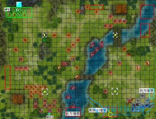 到了第九和第十回合,城堡右侧又会先后增援两大批骑士(仍旧以装备射程1的枪的居多,剩下的装备弓,援军会主动向我方移动),这时我方的两批人员应该已经合流或相隔不远了吧,只要大家遵循“算准距离诱出+下一回合迅歼”的原则,成功挺过来估计不会有太大的问题:)