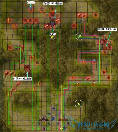将大部分石块引出、并补充好体力后,部队可沿两边山道进军(要是我军整体实力不是很强的话,可以考虑让全军沿左侧上山,左侧的敌人较弱,而且落石数量少且零散)。山道上的投石器攻击范围很宽但杀伤力不大,只是那些装备超远程魔法的贤者很烦人,这时可以让装备フルガード的飞行系配合白鹭王子的再动,飞上去秒杀完贤者后再飞回来