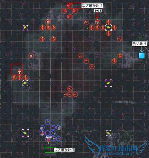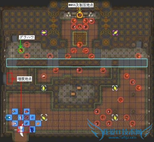 尽快在一回合内消灭BOSS后(如果一回合解决不了、可让四名队员将其围死,以免他到处乱窜、攻击我方脆弱的回复系),左上角的残兵就不足为惧了,在小黑赶上来之前迅速消灭站在指定地点的重甲,再派人站上去选择“到达”即可过版