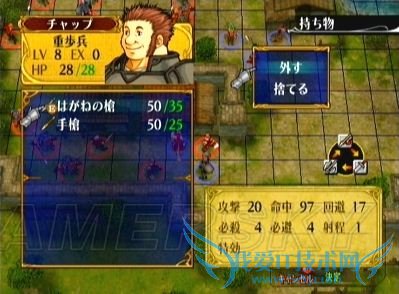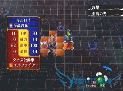 3、敌方回合BOSS会用スレンドスピア攻击(因为此时他若用ルーンソード攻击会No Damage,根据苍炎的AI设定,BOSS自然换用伤害力不为0的武器,于是乎……哈哈XD);