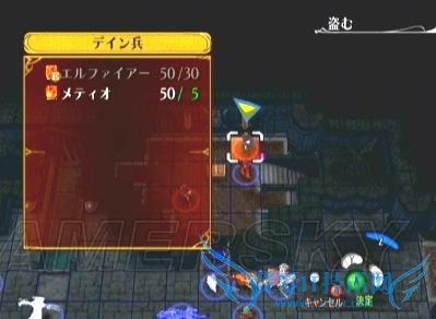 不过BOSS持有“祈り(一定几率发动,效果:遭受致命攻击时不死,只是HP减为原来的1/2)”和“武器破坏(一定几率发动,效果:令对手的武器耐久度下降)”两种特技,建议作诱饵的队员装备最差的武器(减小经济上的损失- -b),而在围歼时要狠下毒手尽早灭之(如果上一话拿到了中间民房的D级风魔法,现在就是使用的黄金Chance^o^)——这样就算他“祈り”发动躲过一死,还有其他队员可以继续攻击。顺带说一句,BOSS身上有特效药,如果盗贼速度足够的话可以偷过来,至于他装备的“半化身の腕轮”……那可就只能看着流口水咯- __ -b