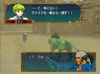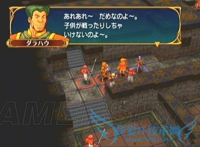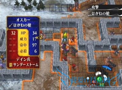 不要害怕那些自警队的剑士,以他们的攻击力几乎是砍不动兽人的,让他单独行动是为了说得最右上方那个手持必杀剑的剑士ツイハーク,只要兽人进入他的攻击范围,他就会主动走过来对话并加入我方(主动请降的人最省心了,喜欢^_^)