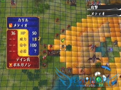 但这就要求配置在右下方的我军要在第一回合内将附近的枪兵和骑士全部消灭(最多只能留下一名攻击力相对最低的枪兵)——作诱饵的神官无法承受多个敌人的攻击- -b。所以如果我方实力不够的话,那就不要管敌方自警队的死活,让モゥディ一人吸引全部火力就好。