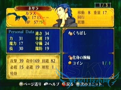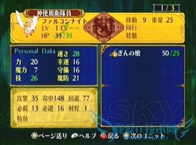 最后,建议大家在本话好好利用飞马不受地形限制的优势,不妨飞出船外跟乌鸦玩玩。用点心培养的话,甚至可以让飞马在本关转职(乌鸦算作高级职业,每只的经验值很不少的说-o-)——怎么样,下图那转职后的飞马(标准职业名:隼骑士)是不是很华丽呢?