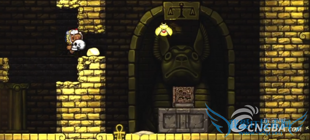 这就是阿努比斯二世,会召唤红骷髅,而且会追到你死,作者建议打法是先离开黄金城,然后找机会跳到他头上就可以避开红骷髅的伤害。