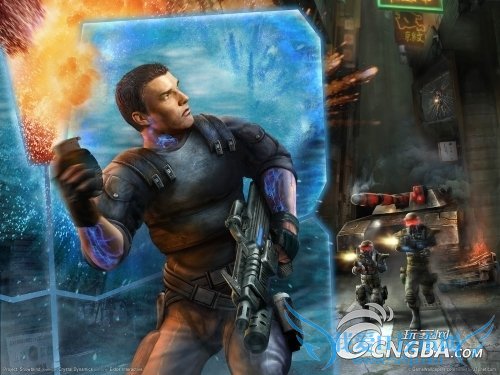 进入大门后这里是一个现代化的大厦,道路基本上一样,在一处没有门的地方玩家只要打碎玻璃就可以通过。玩家也只有依靠按SELECT的查看任务地点来识别方向。进入到最里面后打开开关,这是会有很多敌兵前来攻击。装备上最厉害的武器,在使用防护盾可以安全过关。消灭所有敌人后将打开防护罩内的四个红色物质打碎,之后敌人的基地被开始爆炸。