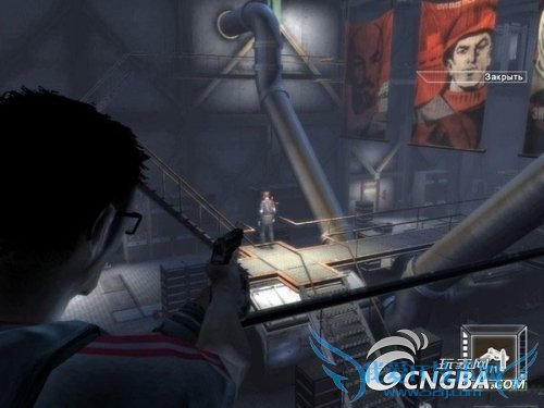 在办公室中可以找到一把钥匙,这把钥匙可以打开先前爬入管道拿这把钥匙的铁门旁边的一处安全门。从安全门进入躲过激光预警系统来到工厂内部的一个机械房,这里有3名守卫和2名工人,可以利用在枪上安装消音器或者X射线等手段来逐一解决。利用楼梯来到机械房上方的一间控制室内,解决掉里面的守卫后可以在屋内找到ID卡。