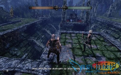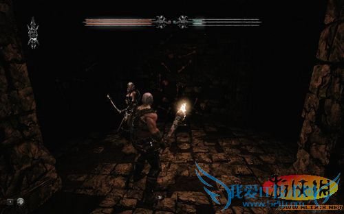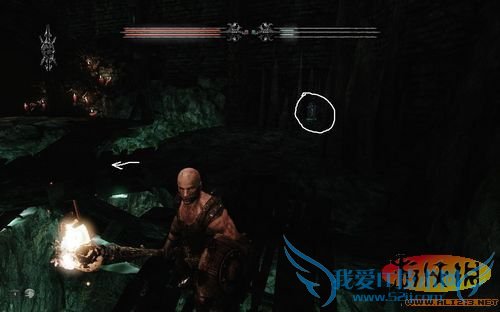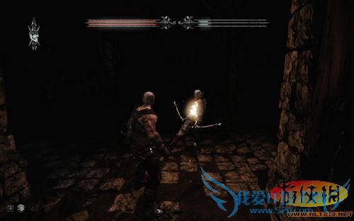 走到这里其实是会有提示的 把箭点燃 然后射右边顶上的火盆 箭头指的地方会有一个门 不过要点燃火盆才会开启