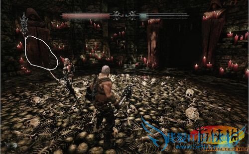 就是刚开始可以使用魔法那里 打完骷髅怪 蜡烛就会点亮 进左边那个画圈的门(这个门需要战士来推开) 右边那个可以不必理会