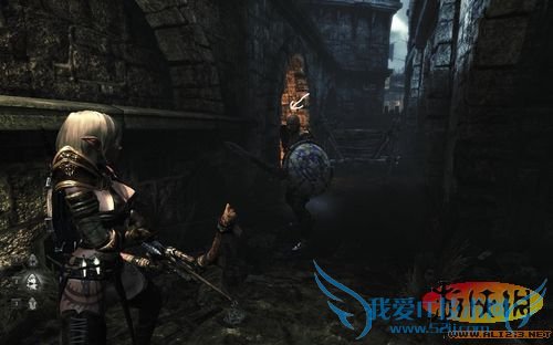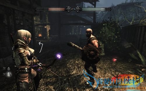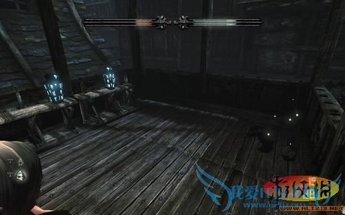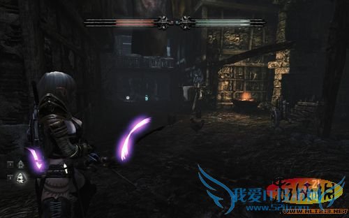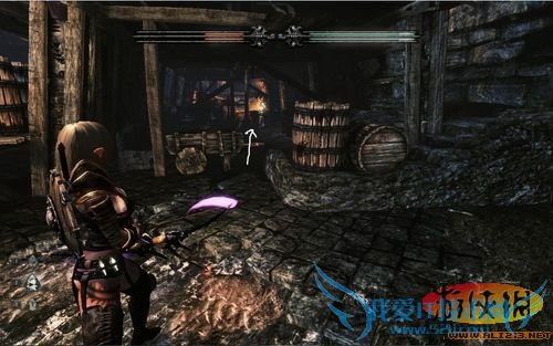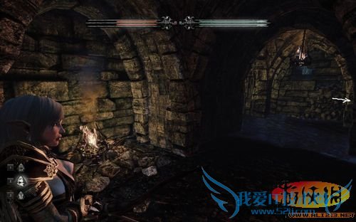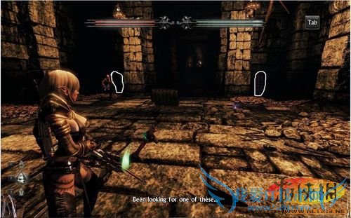 进到们里 门口会有一个火把 建议换上它 因为里面很黑 靠近火盆就会自动点火了 当然 你也可以让妹子点燃她的箭也可以照亮