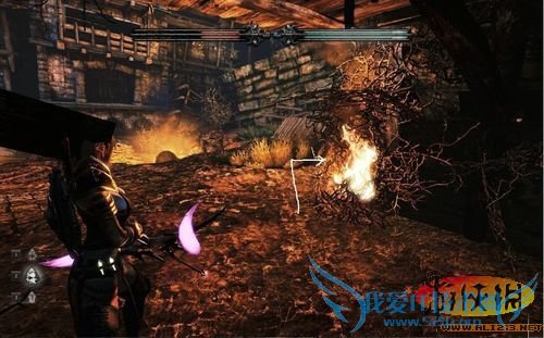 点完火之后 向前走几步 也会有提示的 也是按E 妹子就会用火箭射对面的火盆 机关就会解开出现一条路