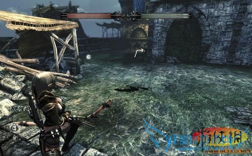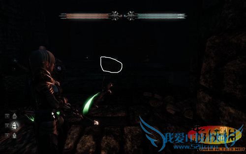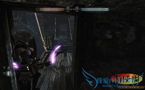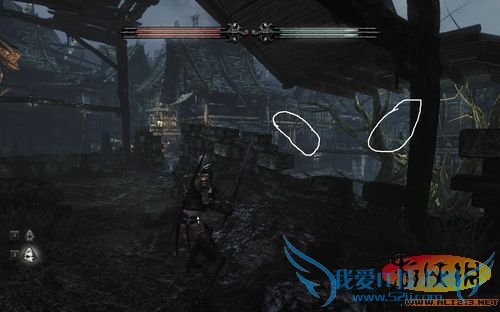 拣完第二个地点出来就会遇到怪物 有的可能会站在桥上 图上画圈的地方是拉着桥的绳子 记住 不要射断它 一根都不行