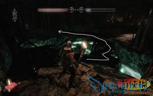 门开之后就一直往前走 不要怀疑 不是你卡了 而是这个路很长... 下到底 如果你觉得很黑 可以先打开中间的箱子捡完里面的东西周围的蜡烛就会被点亮 然后出怪