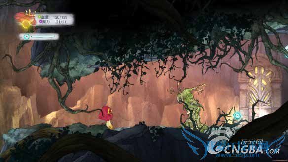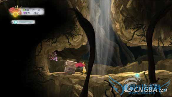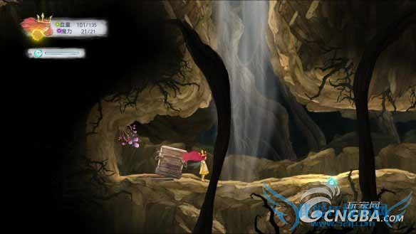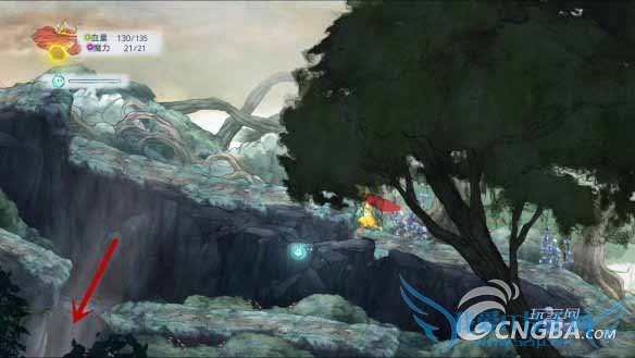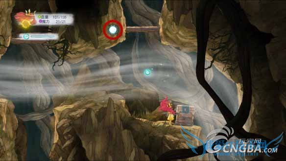 这段路上又有很多东西可以探索,有好几个提升属性的星辰。总的来说一路往左走就是正路,往向上或向下的分支路线前进则是宝箱。趁着风停止的间隙,可以利用冲刺进入图中的小洞。