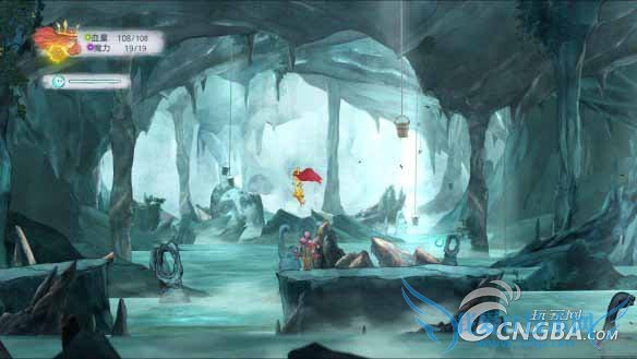 顺着地底向上吹的风飞上去。这里需要注意,在中段会有一股从左向右吹的风,如果直接飞是飞不上去的。在接触这股气流时按冲刺(空格)加速就可以轻松到达上层了,搜刮玩物品后打开机关离开。
