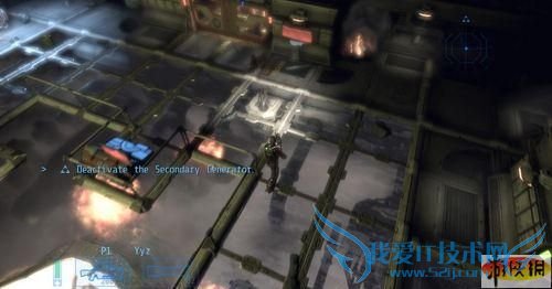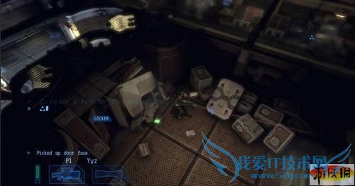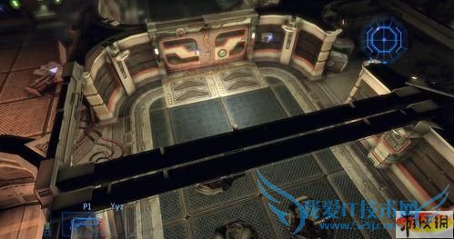 地图在右上角显示,那个三角形就是当前的waypoint,往那里走就对了,地图的旋转是基于你现在的场景的方向的,而不是人物的面对方向,来到这里拿了一个保险丝之后,就可以过去修理那道损坏掉的门了。