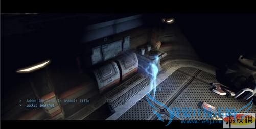 来到空气净化间,右边地上有把新武器-火焰喷射器