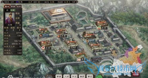 这里说一下出阵武将只有三英加蹋顿,蹋顿我给了他季玉找出来的弓,有了远射,攻城给了备备~刘焉军师+2统,2爷加上官职统已经上了100,说下时间,此时已经是186年三月,大地图局势忘记拍了