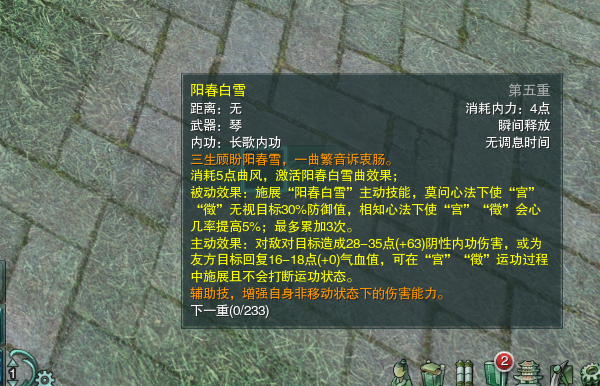 答:有个技能是切换成影子,影子用剑的 主要还是靠宫商角徵羽打伤害,阳春白雪 高山流水 平沙落雁看你喜欢用哪一种模式 音域比较实用的是减伤和暂停别人技能CD的这两个 >>详细