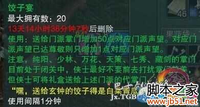 选中门派掌门 对他们使用饺子盒就可以了,喂到他给你一个DEBUFF为止!