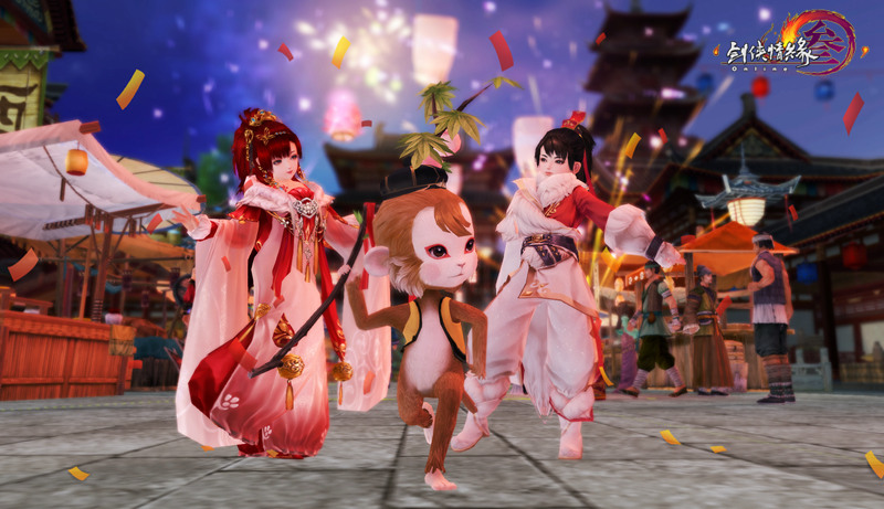 侠士可通过节日民俗活动来获取本年度限定的永久跟宠小猴“行者”,轻松砸年兽陶罐就有诸多豪礼降临,还有多种礼品随心换取。当然敢于挑战的侠士可参与大型机甲年兽的击杀,将有额外奖励和小年兽惊喜掉落;准备安逸过年的侠士也不要忘记贴春联!