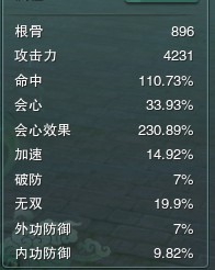 装备推荐:双会加速。(说长歌需要破防的好好看看你的阳春白雪,无视目标30%的内功防御!)本人7%破防,