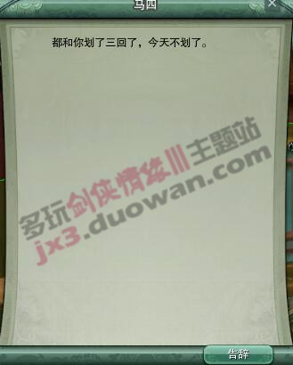 这个奇遇稍微有点差别,任务到马四说他要去南方办事的时候,就没有线索了,