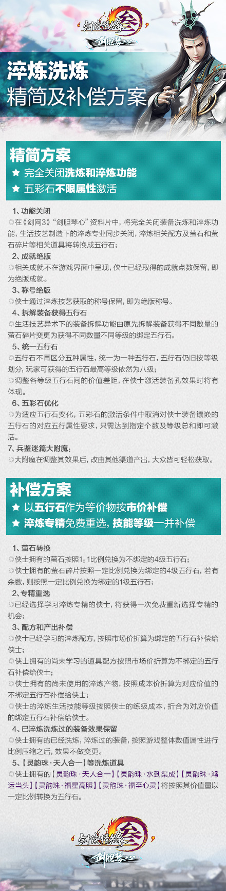 剑网3剑胆琴心 调整和淬炼补偿方案