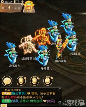 BOSS:益算星君.光,会群水法,小怪解药童儿被控制的情况下,伤害提升,在益算星君.暗死亡时将其挂起,物理攻击2W左右。
