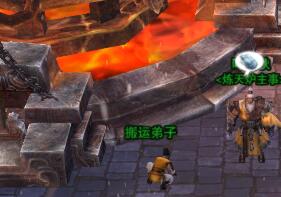 坑爹之处在于这个石头会被别人抢的!!当然,会有提示,手速慢的不赶紧捡起来就被人抢走了。搬运的路线是进门,一直往左边向前,身边会有很多黄焖鸡npc跟你一起搬,跟着走就好。