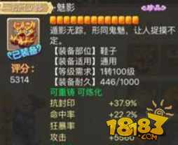 鞋子采用3介打满宝石属性。大致如下。命中率+32.56% 狂暴率+32.56% +7180攻击 炼化连击率+15%,连击次数+4