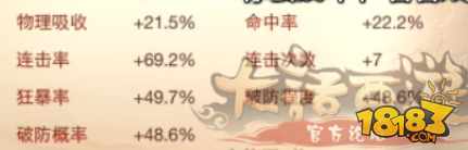 总数值=攻击61799+命中率+62.36%+狂暴率+59.36%+连击率43.5%+连击次数+7+破防几率71.2%+破防程度+81.7%