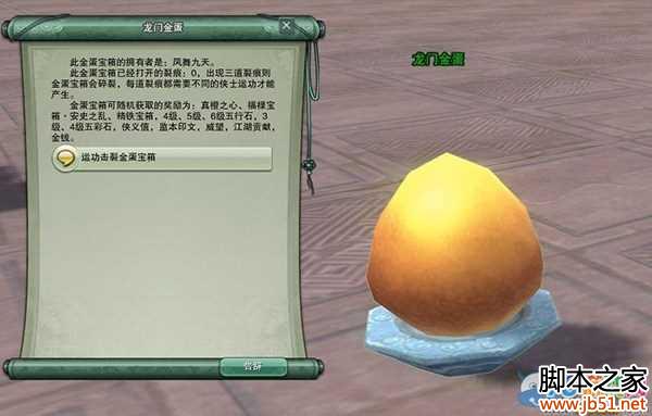 以上就是小编给大家带来的剑网3龙门金蛋怎么砸 2016元旦砸金蛋活动介绍的全部内容了,希望大家喜欢,祝大家游戏愉快!更多实用攻略,更多最新消息请继续关注JB51!