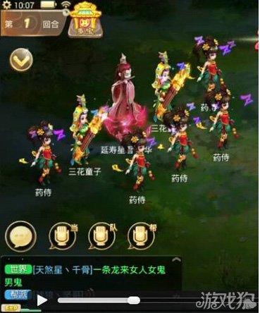 BOSS:延寿星君.人华,会把睡眠状态的小怪打醒,有几率放群水法,秒1万3左右。小 怪:三花童子,一开始为睡眠状态,被打醒后入群火法,秒1万3左右。每次下回合有几率自动回到睡眠状态。