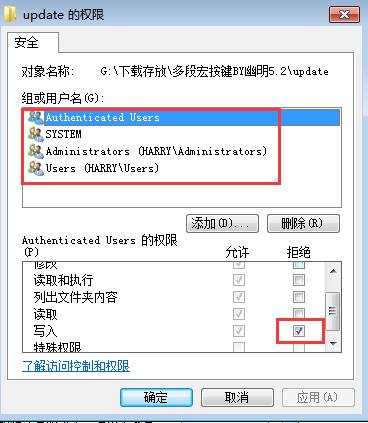 是全部用户组的写入都“拒绝”