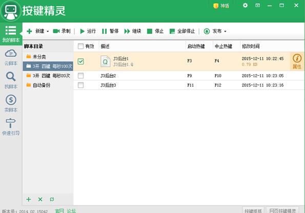 今天小编给大家带来的是关于剑网3 按键精灵强制更新无法使用解决办法,小伙伴们一起来看一看吧。经过12月11日,按键精灵强制自动更新到2014.03版本后,导致后台热键无法使用。这里给大家提供一个暂时解决方案。【此方法只适用于2014.02版本,已更新最新版本的无法使用,所以必须使用更新前的版本2014.02