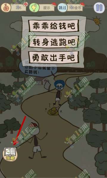 回家探望奶奶,不想半路遇上贼人,如何是好?首先我们点击左下方攻略。