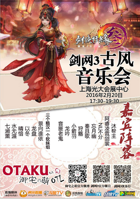 剑网3将在本次御宅之萌准备了大量的红包奖品。无论是漫展白天的舞台互动环节、现场的游戏环节、还是晚上的古风音乐会直播,都会发放红包。全天福利不间断,根本停不下来!