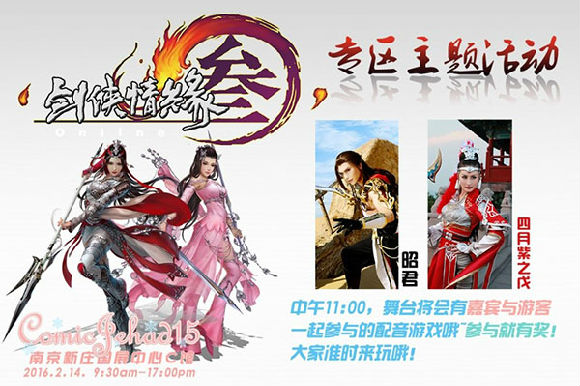 南京ComicJehad15同人会现场将举行剑网3主题的系列主题任务,侠士完成相关任务后,将获得剑网3的奖品:罗伞激活码、风筝挂件、欢乐时光卡等。